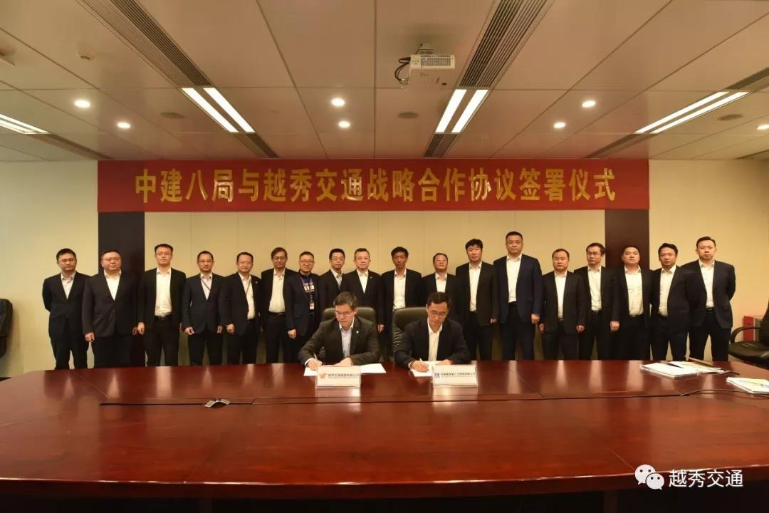 随后,天游ty8交通何柏青总与中建八局贾海庆总签署了双方战略合作框架协议。李锋董事长、许啟新总等领导共同出席并见证了签约仪式。
