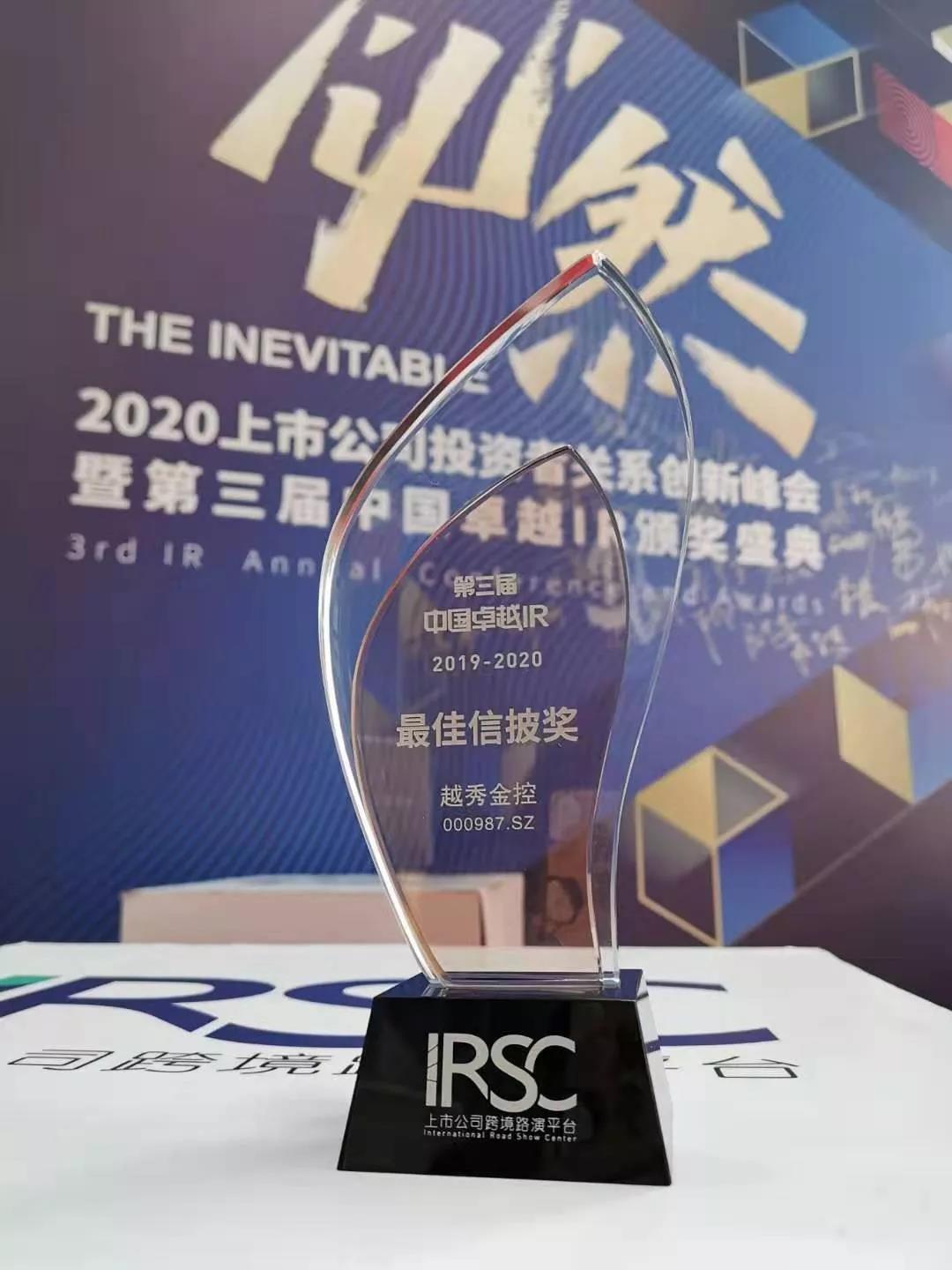 2020年上市公司投资者关系创新峰会暨第三届中国卓越 IR 颁奖盛典在深圳举办,天游ty8金控(000987.SZ)信披团队凭借专业合规的信息披露,真诚透明的投资者关系管理,荣获第三届中国卓越IR“最佳信披奖”。