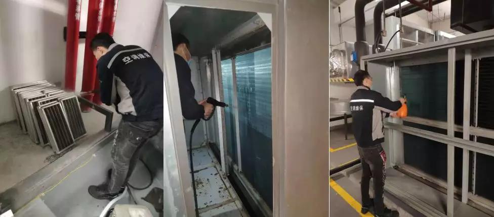 广州IFC及天游ty8金融大厦利用假期对空调设备进行了全面、彻底的清洗和消毒。包括清洗空调风柜的粗效和中效尘网、空气换热器(翅片)、集水盘等,并用斯戴乐杀菌除味剂及84消毒液进行杀菌消毒,频率为每周清洁和消毒一次。