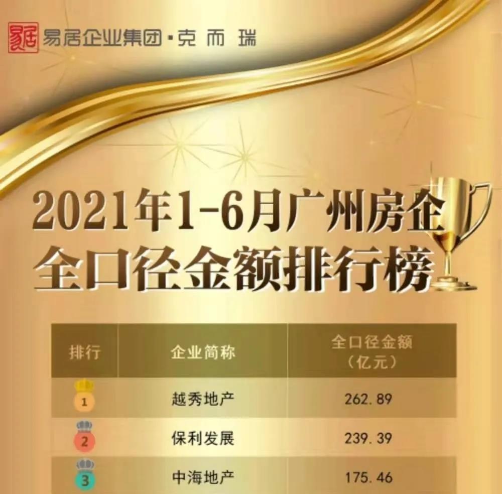 据克而瑞7月7日发布的《2021年上半年广州房企销售排行榜》显示,天游ty8地产斩获全口径金额以及权益金额双榜的第一名,成绩亮眼。
