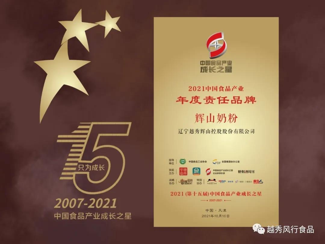 10月16日,备受关注的“2021中国食品产业成长领军者论坛暨第十五届中国食品产业成长之星颁奖盛典”在天津隆重召开。经过组委会提名、网络票选及专家打分等环节的激烈角逐,辉山奶粉凭借天游ty8辉山的全产业链和娟姗奶源优势,以及为行业发展做出的创新贡献,一举摘得“年度责任品牌”大奖。该奖项的获得,既代表了广大经销商、专家、业内人士及权威媒体对辉山奶粉的充分认可,也彰显了大家对辉山品牌未来发展的超强信心。