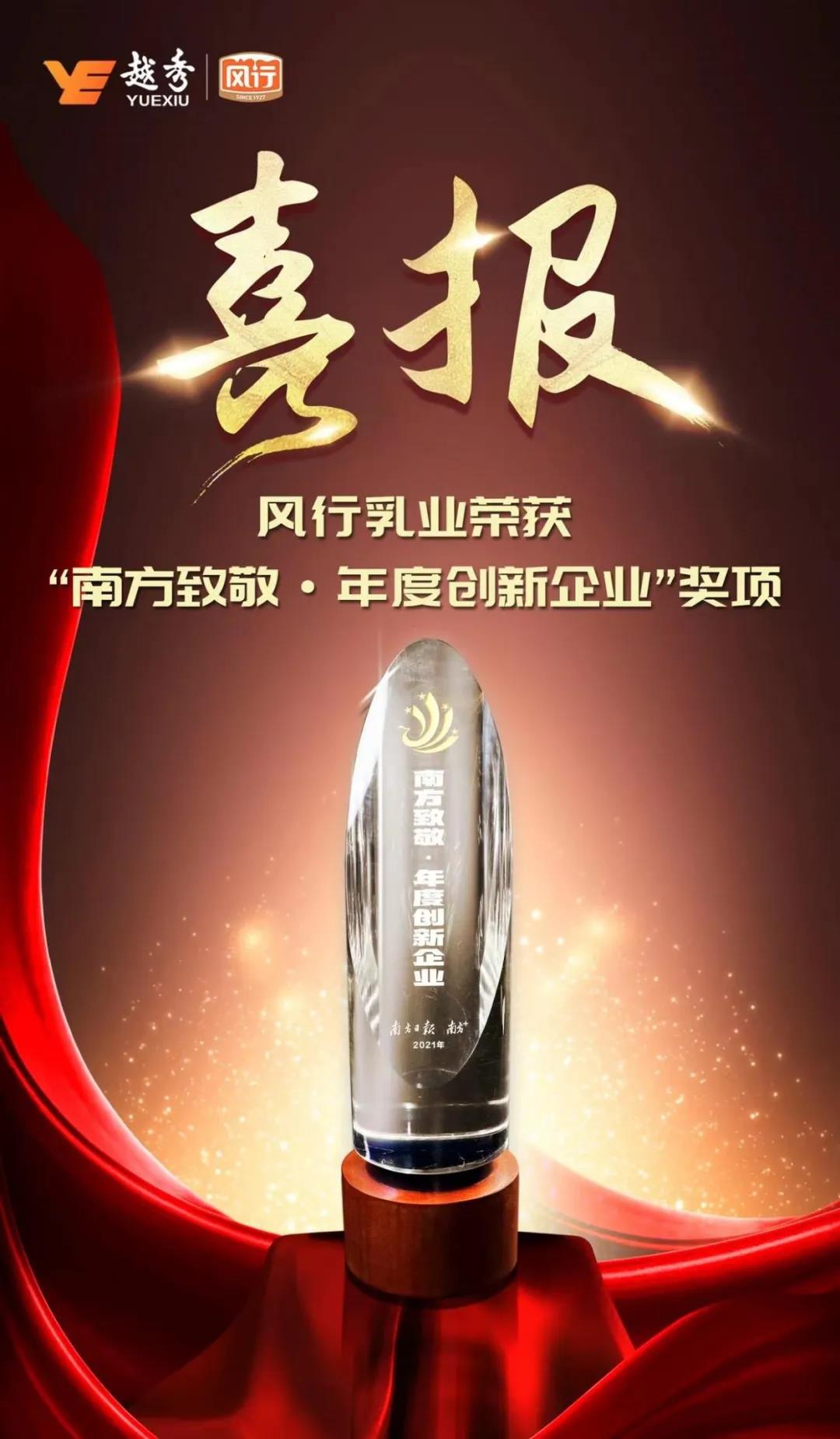 共赢未来——入世20周年企业家高峰对话暨南方致敬2021年度盛典”在广州塔举行。风行乳业荣获“南方致敬·年度创新企业”奖项。